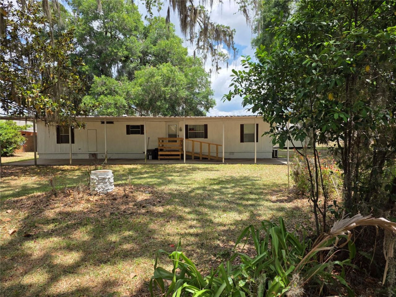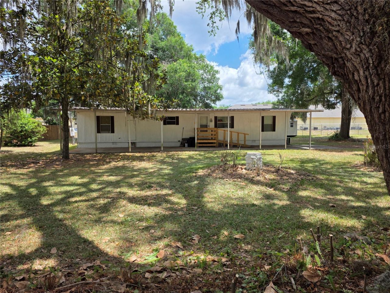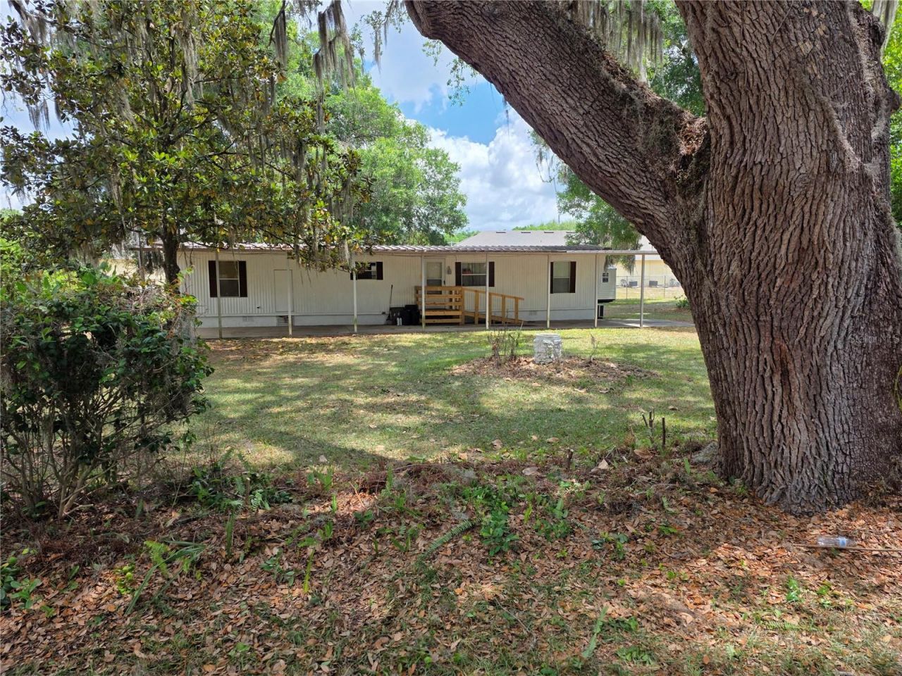 This big corner lot with mature landscaping is the perfect setting for this 2 bedroom 2 bath mobile home in Orange Blossom Hills. The bedrooms and living room has carpet and the bathrooms, kitchen, and hallway has linoleum. There is an outside laundry room on the back side with a concrete sitting area that is covered. On the front side of the home is a very long carport and a new handicap ramp with a nice landing. Three outbuildings, and one being fairly new gives you plenty of of storage area. At this price, please make your appointment soon because it will not last long.