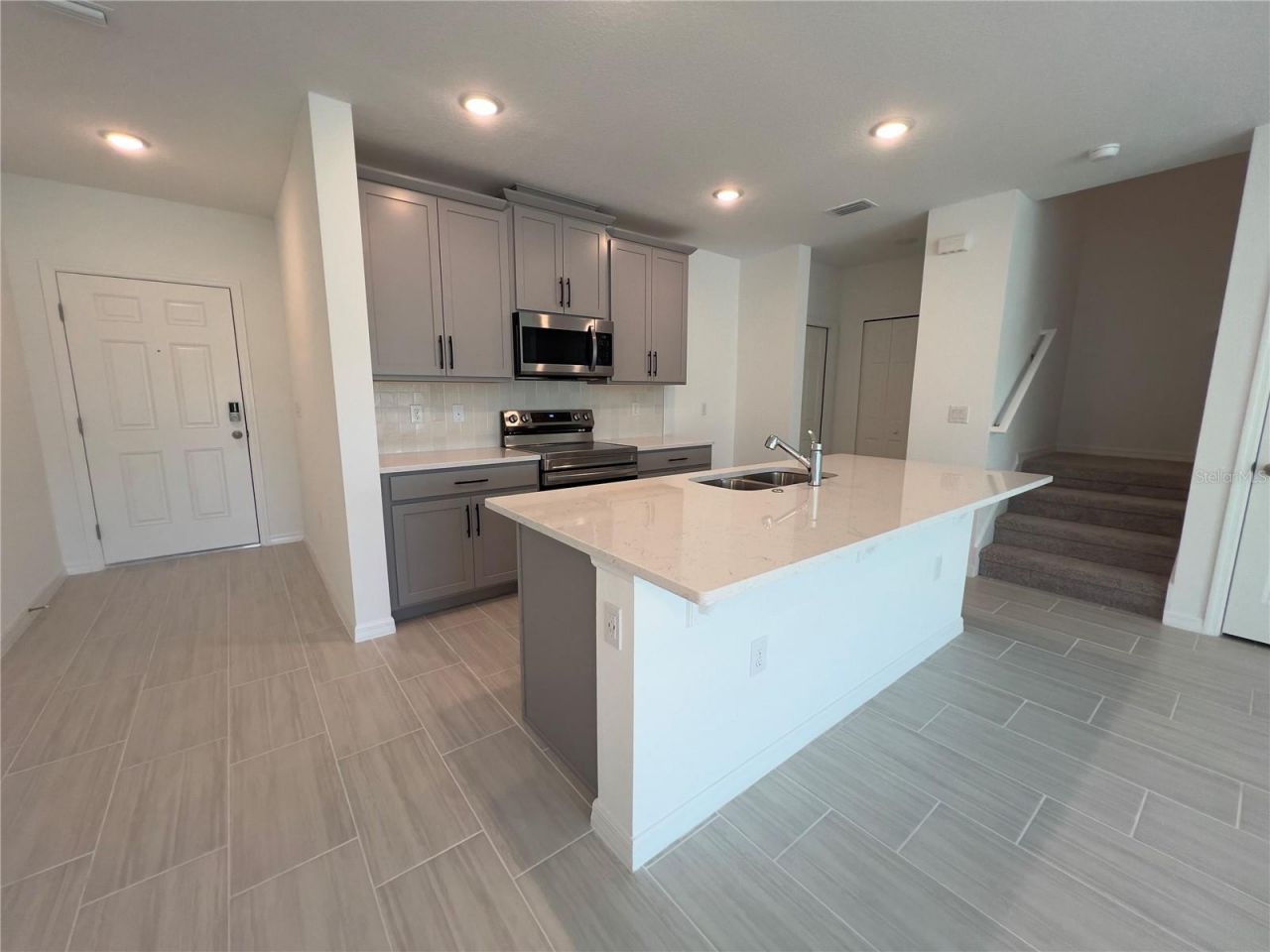 Beautiful move-in ready 4-bedroom townhome with lake view in the desirable Thompson Village community in Apopka. This brand-new home offers a bright open-concept layout with a modern kitchen featuring stainless steel appliances, a large island, and plenty of cabinet space, perfect for both everyday living and entertaining.Unlike many rentals, this home comes fully equipped with washer, dryer, and ceiling fans throughout, providing a comfortable and convenient move-in experience from day one.Upstairs features all four bedrooms, including a spacious primary suite with a private bathroom. Enjoy a peaceful lake view from the covered lanai, plus additional green space behind the home, ideal for relaxing after a long day.The property includes a 2-car garage and extended driveway for additional parking.Conveniently located near major roads, shopping, dining, and everyday essentials.Available now. Easy to show.